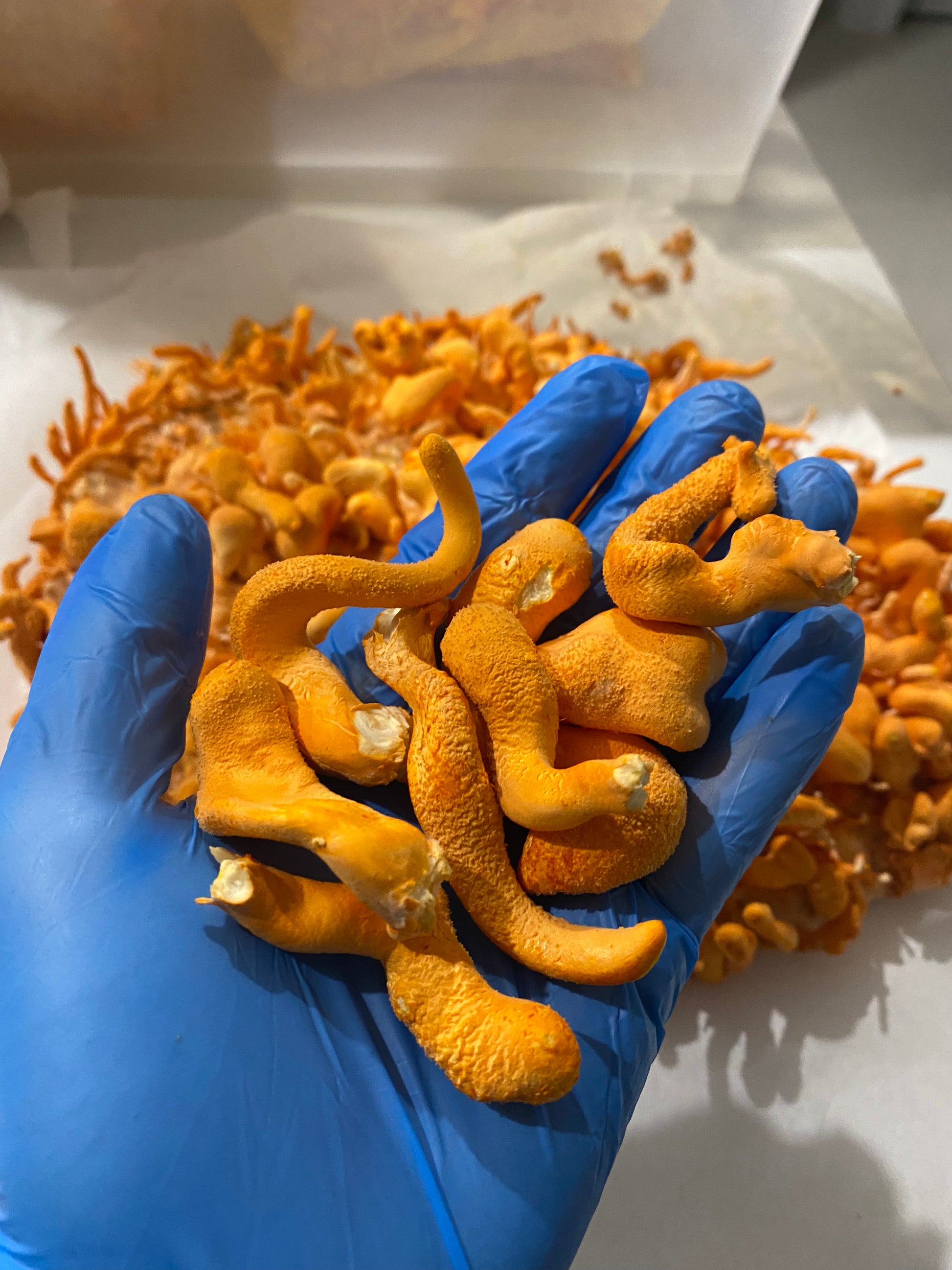 We're the first and only Corydceps growers in Australia, we (humbly) believe we're the biggest Reishi farm, we grow a HEAP of Lion's Mane and we have a whole range of other functional mushrooms in our rotations (Turkey Tail, Maitake, Shiitake, Tremella, etc.).